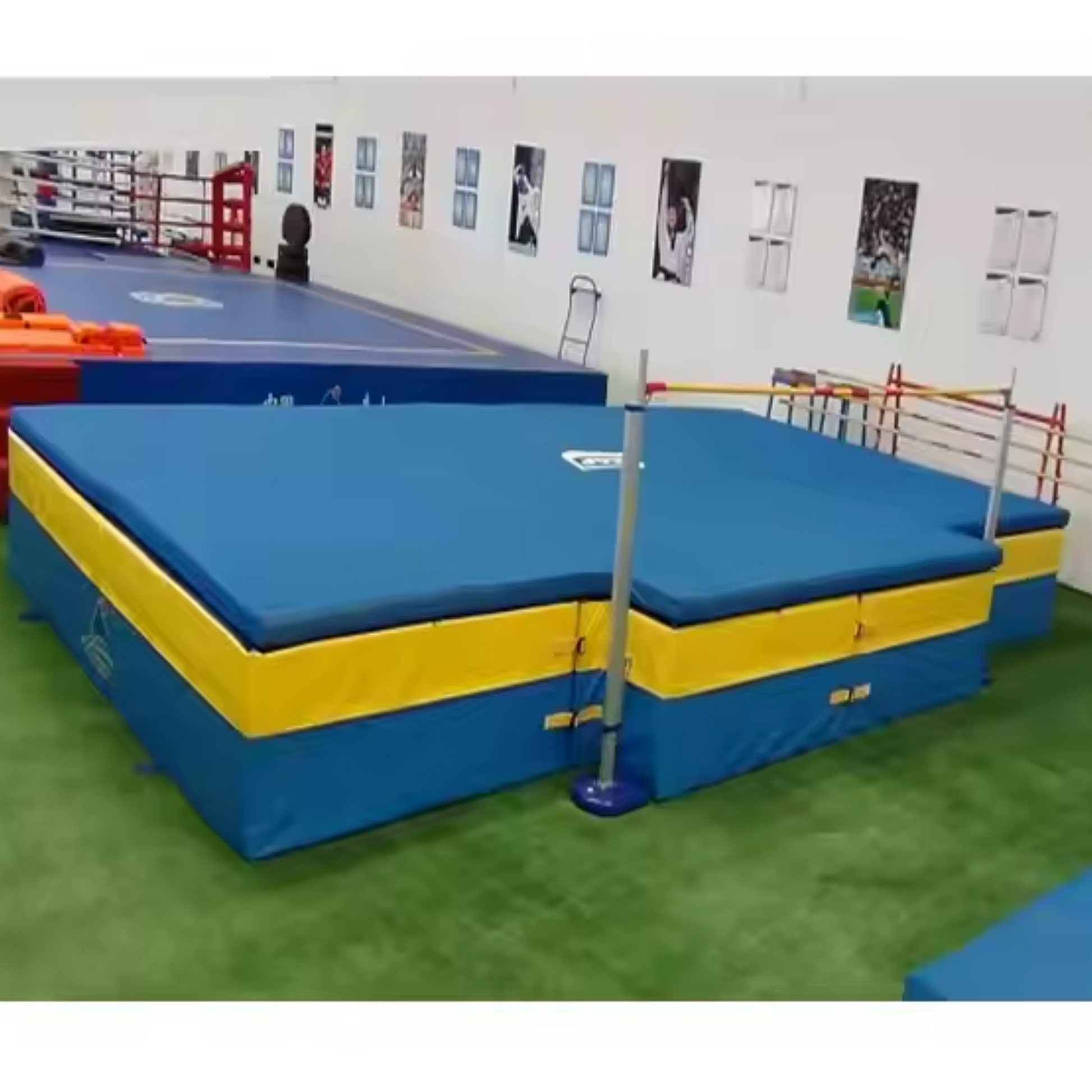 The AeroPad Competition High Jump System offers elite-level performance with a vibrant, stadium-ready design. Constructed with triple-layered foam, weather-sealed vinyl, and reinforced seams, it ensures exceptional safety and bounce-back support for both practice and competitive jumpers.